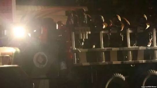 另据金速卡昨日上午在网上发帖称,在洪森警告将镇压该党示威活动的同时,军方已在当天零时至1时调动了三、四十辆运载着军人和装备的军车,在救国党总部门前每隔20分钟来回巡逻一次,期间这些军车还一度停在该党办公楼门外约半个小时后才驶离。