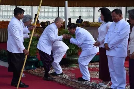 当天,莫尼列国母和西哈莫尼国王、赛冲主席、韩桑林主席、洪森总理与夫人文拉妮等在王宫里向僧侣布施食物,向西哈努克国父骨灰塔敬献鲜花,寄托诚挚怀念。