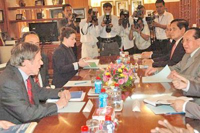 本报讯 柬埔寨副总理何南丰昨日下午会见负责民主人权及劳工事务的美国助理国务卿波斯纳时表示,沈良西、蒙苏农多被判刑,完全属个人犯罪问题,并非政治因素。如果王国政府干涉法庭释放他们,那等于“无‘法’治国”。