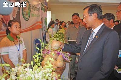 本报讯 由商业部举办的首届柬埔寨蔬菜和水果展今日上午在金宝殿大酒店举行,商业部长占比塞出席剪彩。