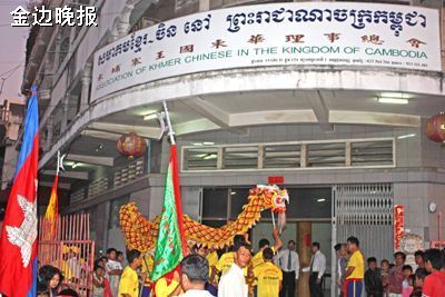 鸣锣开道,鼓声喧天,六大狮团在柬华理事总会秘书长蒙美连,副会长蔡迪华、黄焕明、罗世兴、杜瑞通等率领下前往中国驻柬埔寨大使馆拜年贺岁,潘广学大使、金远参赞、韦宁主任等中国使馆官员欢迎柬华总会醒狮团到来,并观看舞狮表演。