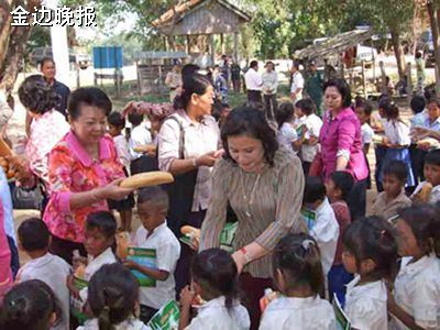 本报讯 工业矿产和能源部部长瑞赛的夫人谢卿等人前日上午,前往菩萨省菩萨市,慰问宗朗波分区瓦艾小学全体师生,并向他们赠送物资。